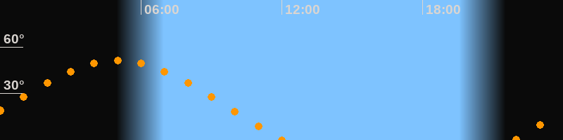| Aufgang | 21:52 Uhr im Osten (αAz = 70°) |