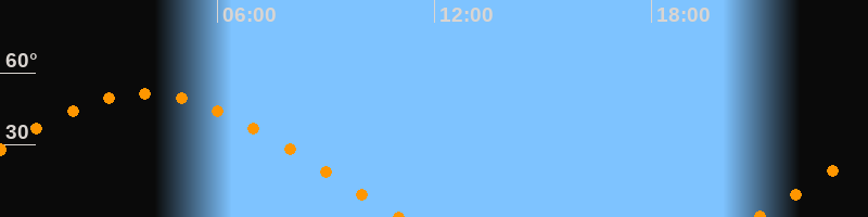 | Untergang | 11:03 Uhr im Westen (αAz = 290°) |