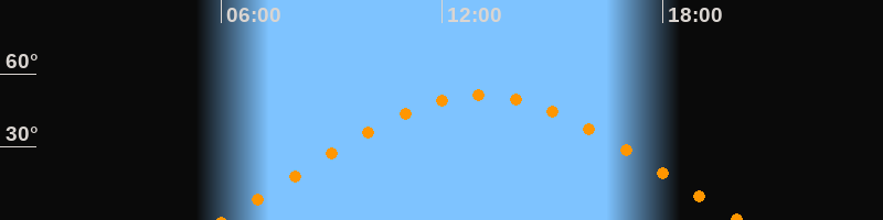 | Aufgang | 06:00 Uhr im Osten (αAz = 70°) |