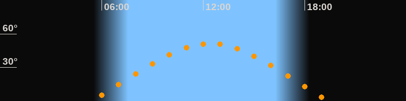 | Höchster Stand (Kulmination) | 12:24 Uhr (h = 51,3°) |