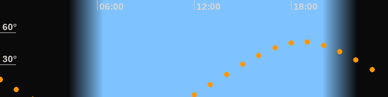 | Aufgang | 11:40 Uhr im Osten (αAz = 70°) |