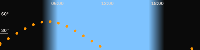 | Höchster Stand (Kulmination) | 05:45 Uhr (h = 51,3°) |