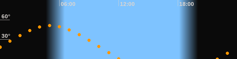 | Aufgang | 21:57 Uhr im Osten (αAz = 70°) |