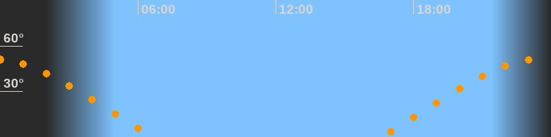 | Untergang | 06:42 Uhr im Westen (αAz = 290°) |