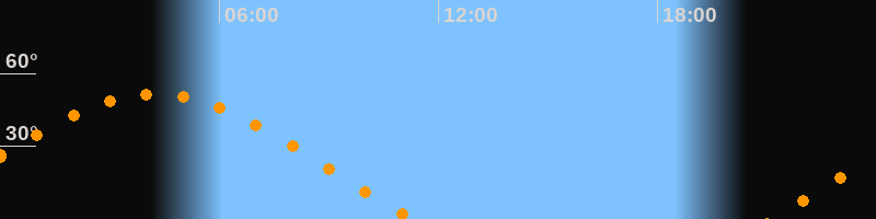 | Untergang | 11:17 Uhr im Westen (αAz = 290°) |