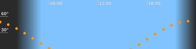 | Untergang | 06:11 Uhr im Westen (αAz = 290°) |