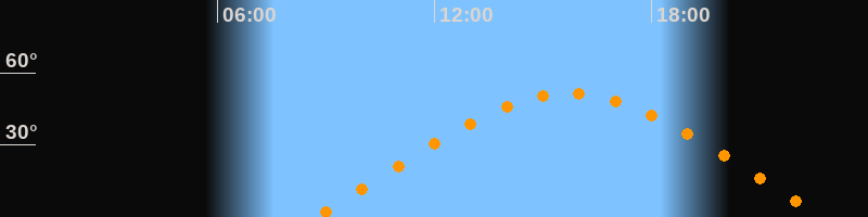 | Aufgang | 08:40 Uhr im Osten (αAz = 70°) |