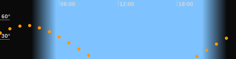 | Aufgang | 19:30 Uhr im Osten (αAz = 70°) |