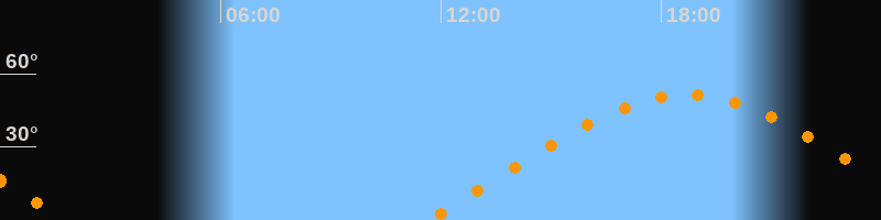 | Aufgang | 11:38 Uhr im Osten (αAz = 70°) |