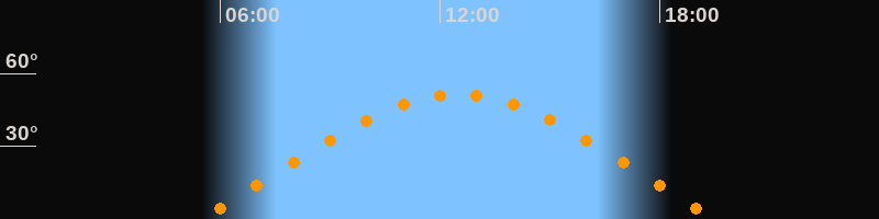 | Höchster Stand (Kulmination) | 12:30 Uhr (h = 51,3°) |