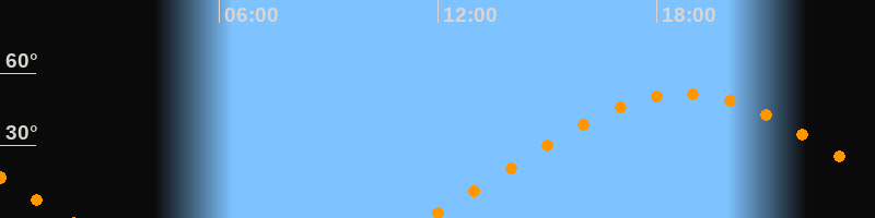 | Aufgang | 11:42 Uhr im Osten (αAz = 70°) |