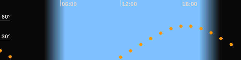 | Höchster Stand (Kulmination) | 18:30 Uhr (h = 51,3°) |