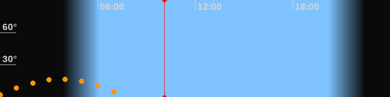 | Aufgang | 23:37 Uhr im Südosten (αAz = 126,4°) |