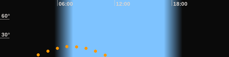 | Höchster Stand (Kulmination) | 07:29 Uhr (h = 16,7°) |