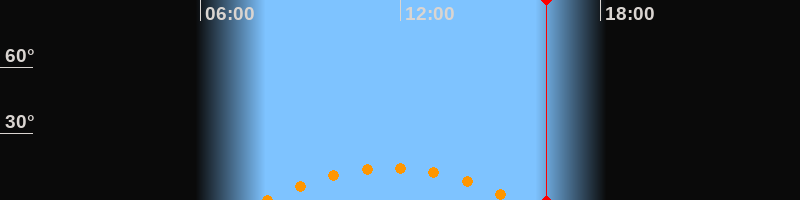 | Untergang | 15:28 Uhr im Südwesten (αAz = 229,3°) |