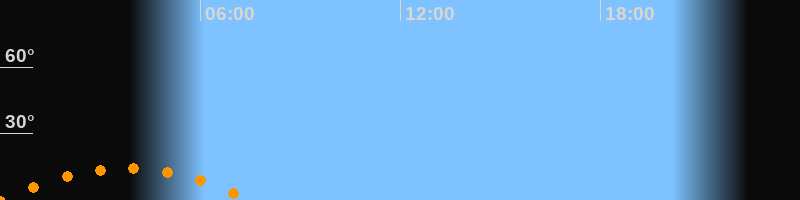 | Untergang | 07:34 Uhr im Südwesten (αAz = 229,3°) |
