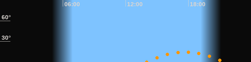 | Höchster Stand (Kulmination) | 17:41 Uhr (h = 14,4°) |