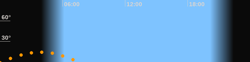 | Aufgang | 00:01 Uhr im Südosten (αAz = 130,7°) |