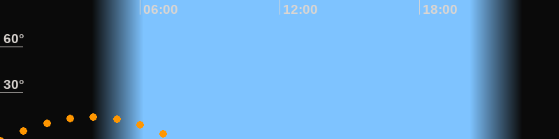 | Untergang | 07:38 Uhr im Südwesten (αAz = 229,3°) |
