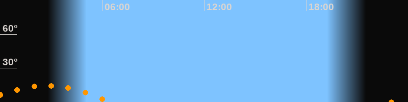 | Aufgang | 22:53 Uhr im Südosten (αAz = 130,7°) |