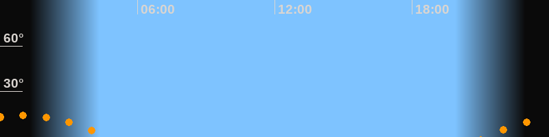 | Aufgang | 21:11 Uhr im Südosten (αAz = 130,7°) |