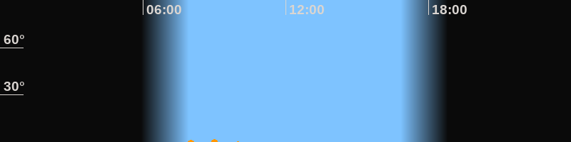 | Höchster Stand (Kulmination) | 08:45 Uhr (h = -0,2°) |
