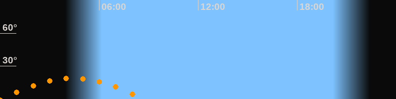 | Untergang | 08:39 Uhr im Südwesten (αAz = 237,8°) |