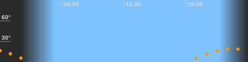 | Aufgang | 18:14 Uhr im Südosten (αAz = 122,2°) |