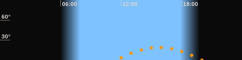 | Höchster Stand (Kulmination) | 15:46 Uhr (h = 19,1°) |