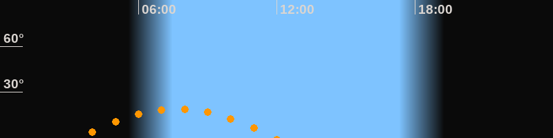 | Höchster Stand (Kulmination) | 07:41 Uhr (h = 19,1°) |