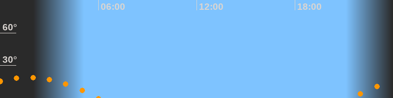 | Untergang | 06:01 Uhr im Südwesten (αAz = 237,8°) |