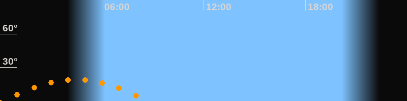 | Untergang | 08:43 Uhr im Südwesten (αAz = 237,8°) |