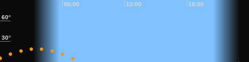 | Aufgang | 23:08 Uhr im Südosten (αAz = 122,2°) |