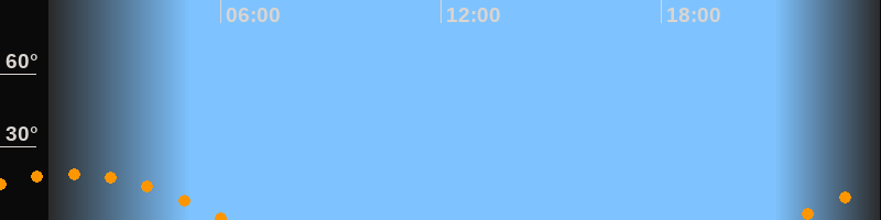 | Untergang | 06:12 Uhr im Südwesten (αAz = 237,8°) |