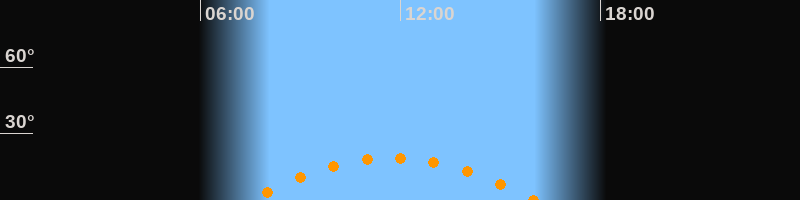 | Höchster Stand (Kulmination) | 11:46 Uhr (h = 19,1°) |
