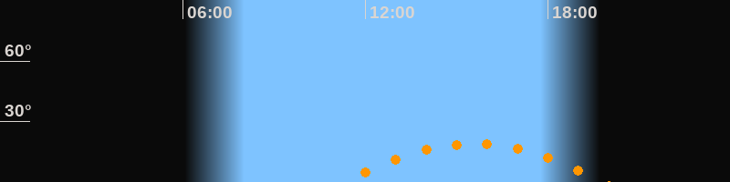 | Aufgang | 11:18 Uhr im Südosten (αAz = 122,2°) |
