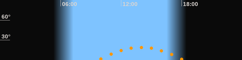 | Höchster Stand (Kulmination) | 13:57 Uhr (h = 19,1°) |