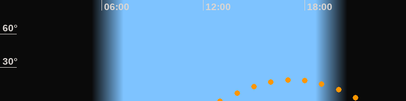 | Aufgang | 12:56 Uhr im Südosten (αAz = 122,2°) |