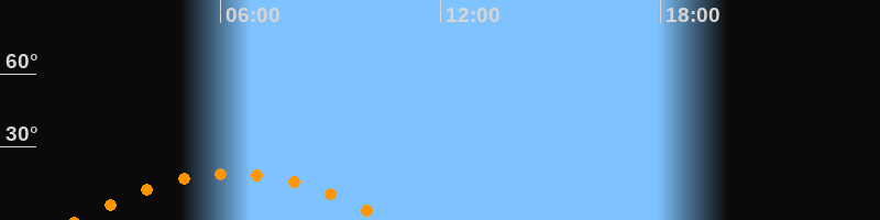 | Höchster Stand (Kulmination) | 06:20 Uhr (h = 19,1°) |