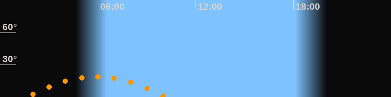 | Höchster Stand (Kulmination) | 05:53 Uhr (h = 19,1°) |