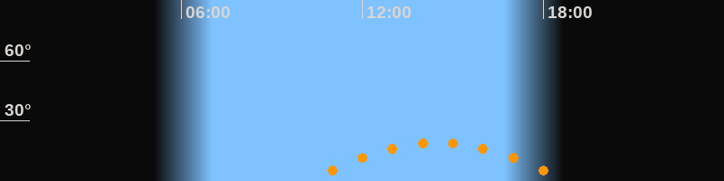 | Höchster Stand (Kulmination) | 14:29 Uhr (h = 19,1°) |