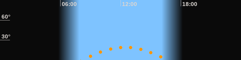 | Höchster Stand (Kulmination) | 12:25 Uhr (h = 19,1°) |