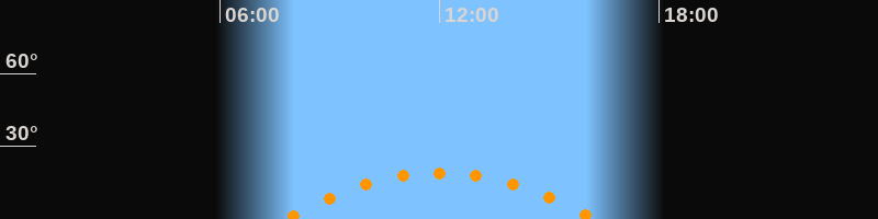 | Höchster Stand (Kulmination) | 12:01 Uhr (h = 19,1°) |