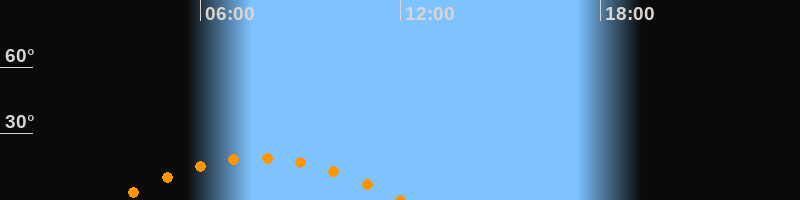 | Höchster Stand (Kulmination) | 07:46 Uhr (h = 19,1°) |
