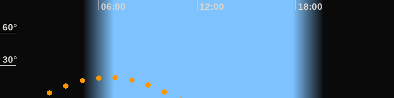 | Höchster Stand (Kulmination) | 06:35 Uhr (h = 19,1°) |