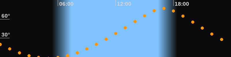 | Höchster Stand (Kulmination) | 16:57 Uhr (h = 76,9°) |