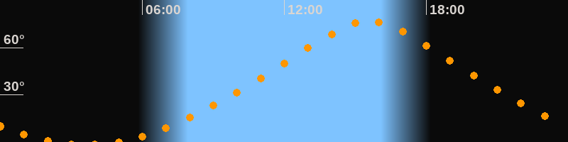 | Höchster Stand (Kulmination) | 15:35 Uhr (h = 76,9°) |