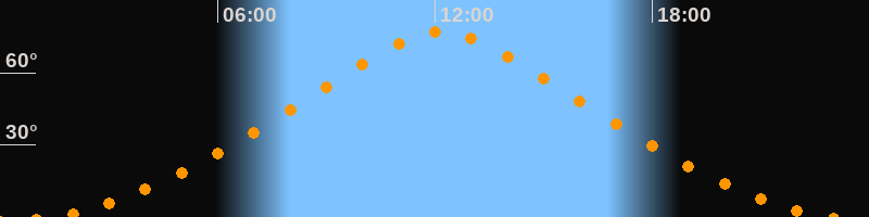 | Höchster Stand (Kulmination) | 12:10 Uhr (h = 76,9°) |