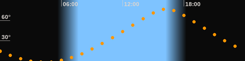 | Höchster Stand (Kulmination) | 16:15 Uhr (h = 76,9°) |