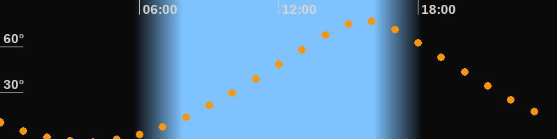 | Höchster Stand (Kulmination) | 15:44 Uhr (h = 76,9°) |